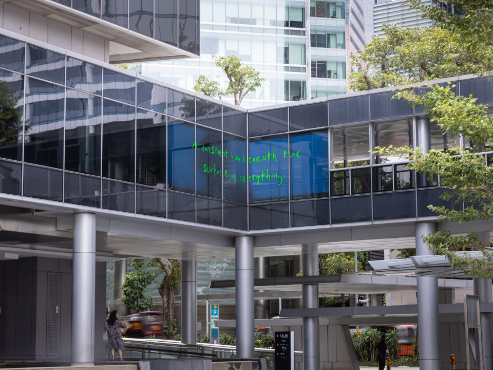 Responding to the shifting rhythms of Singapore’s Central Business District (CBD), Momentary Pulses invites Singapore-based artists to create works that slip into the space between buildings and pedestrian paths, offering moments for listening and reminiscence. These quiet interventions fold into the rhythms of daily routines, drawing attention to the subtle irregularities of urban time and textures that surface when we pause.